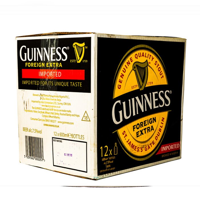 Carton de grande Guinness 7.5 % vol 12 x 600 ml.