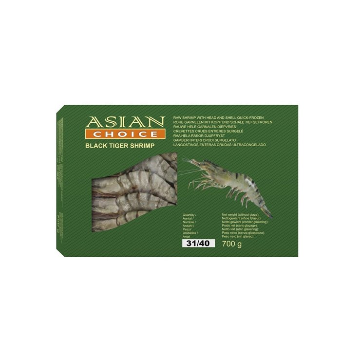 Crevettes tigrées noires 13/15 (décortiquées et décortiquées) 1kg brut. 0,75 kg net (poids égoutté).