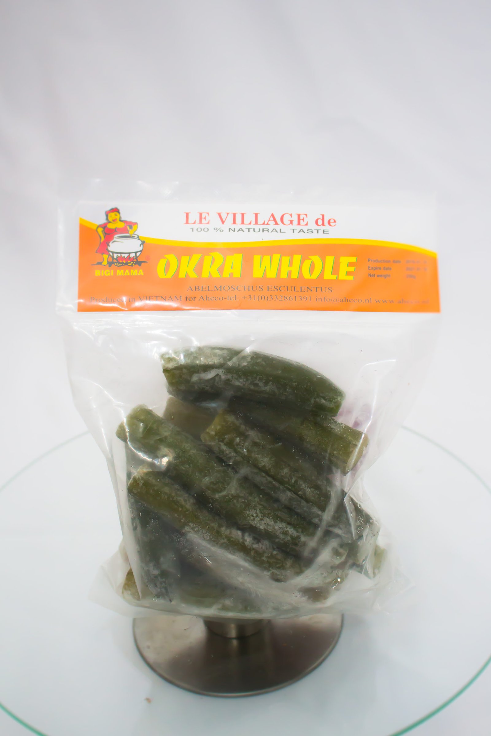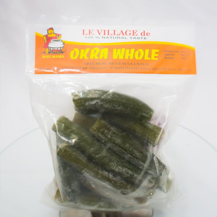 Gombo frais, congelé, vendu en sachet de 250 gr le pacquet.