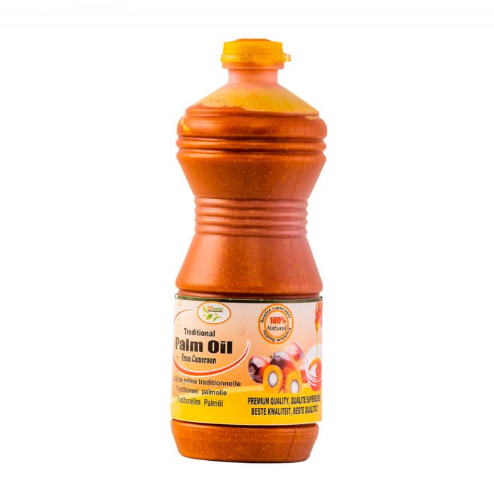Huile de Palme « Mul » du Cameroun en bouteille de 1 Ltr. Cette huile est conseillée pour la cuisson des mets traditionnel comme la sauce jaune de Taro, le Ero, le pilé de paummes et bien d’autres