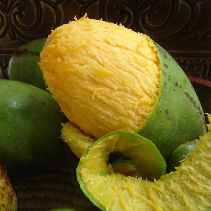 Délicieusement parfumée, juteuse et tendre, la mangue est un fruit charnu. Sa chair, d’un beau jaune-orangé, a un délicat goût sucré. Avec plusieurs milliers de variétés, la mangue vous offre une diversité peu commune de couleurs et de saveurs. Aliment bien-être, elle allie plaisir gourmand et apport nutritionnel équilibré.