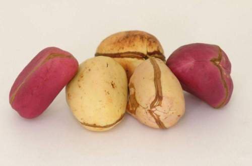 La noix de kola provient principalement de trois espèces de noix de kola (Obi Abata), à savoir: Cola acuminata, Cola nitida et Cola vera. L’arbre à noix de kola a ses origines en Afrique de l’Ouest, mais en raison de la traite des esclaves, vous pouvez le trouver au Brésil et aux Antilles. L’arbre à noix de kola atteint généralement une hauteur de 25 mètres ou 60 pieds; et ses feuilles ovales cireuses encadrent des fleurs colorées en forme d’étoile qui sont des fleurs blanches ou jaunes avec des reflets violets. Son fruit est en forme de gousse avec environ une douzaine de fruits rougeâtres ou de noix de cola assis dans chacun.