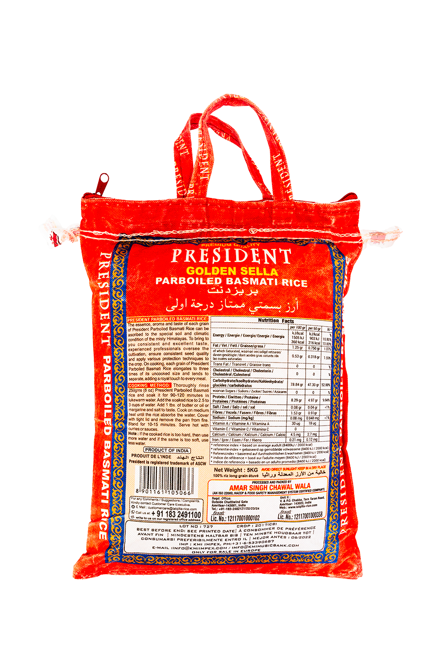 Riz Basmati parboiled PRESIDENTen sac de 5kg.