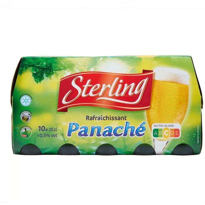 Limonade (eau gazéifiée, sucre, acidifiant : acide citrique, antioxydant :acide ascorbique, arômes naturels), bière (eau, malt d’orge (contient gluten ), maïs, caramel aromatique, extraits de houblon, antioxydant :acide ascorbique).